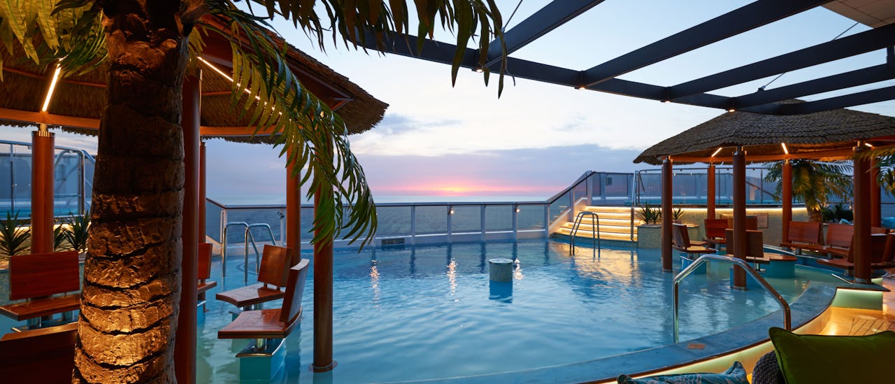 Afslappende pooldæk længst agterud på skibet