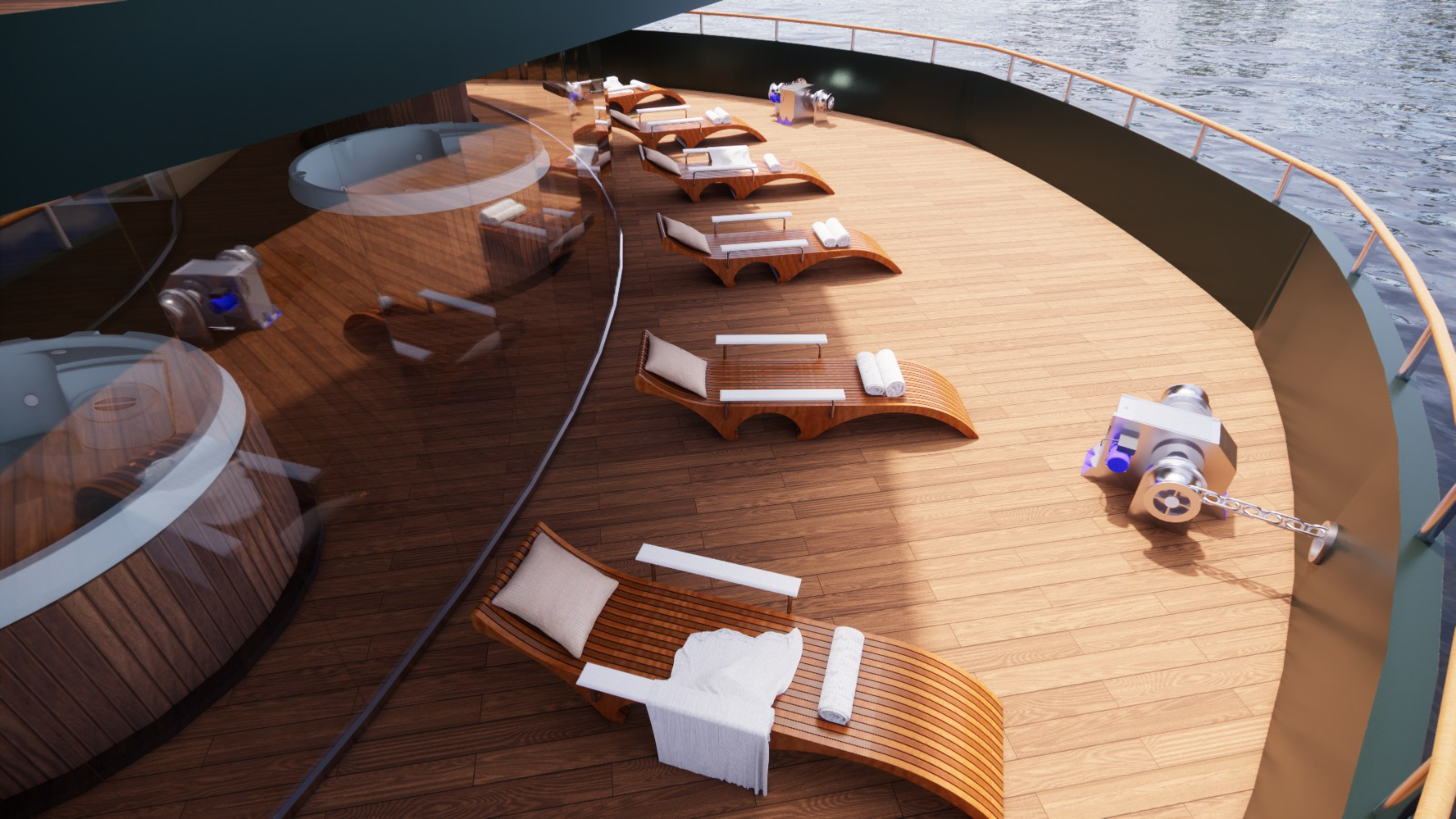 Slap af på soldækket og nyd den stadigt skiftende udsigt over Amazonas. Her kan du se solen stå op over floden eller farve himlen ved solnedgang – det perfekte sted at slappe af og mærke naturens magi.