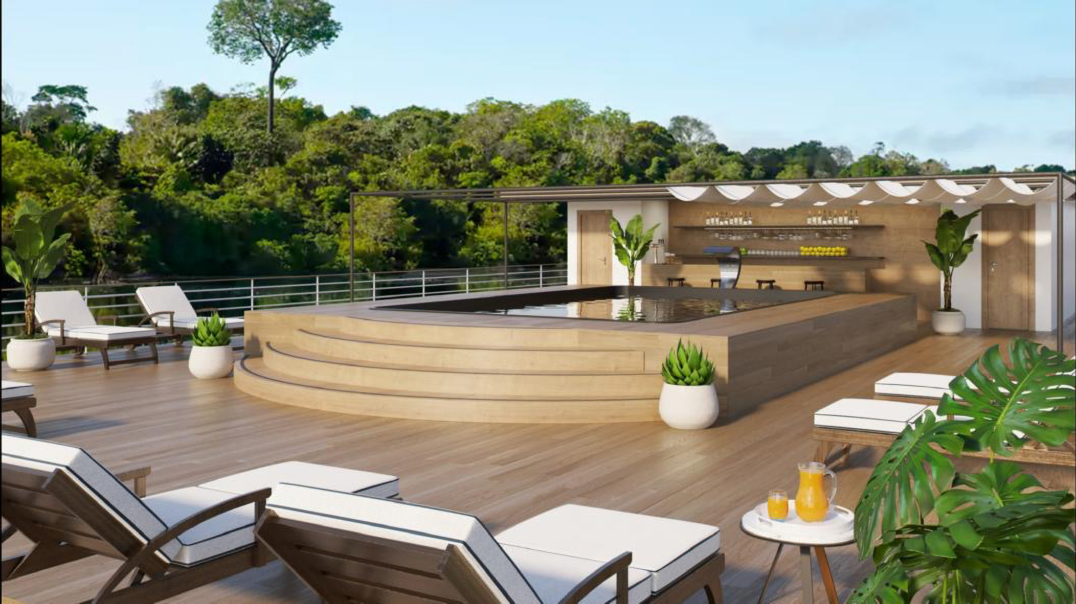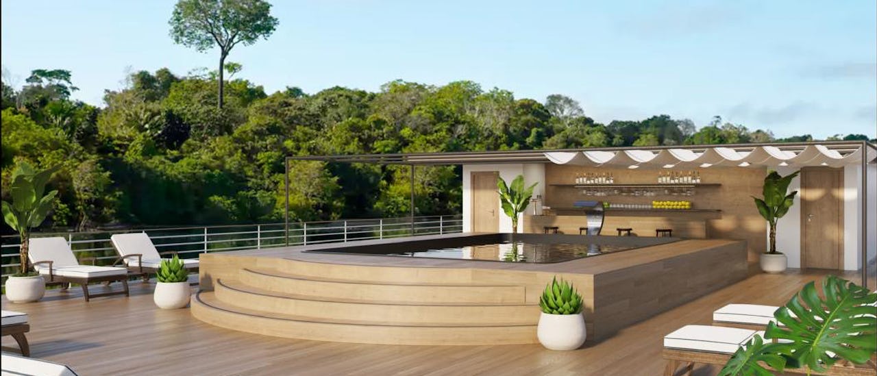 Slap af i saunaen eller forfrisk dig i den tempererede pool, mens du glider gennem Amazonas’ hjerte, omgivet af dets rige og levende dyreliv.