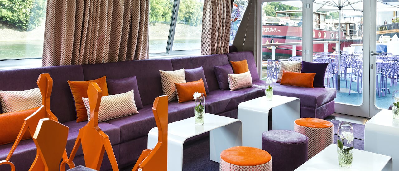 Ombord er der plads til 22 gæster fordelt på 11 kahytter over to dæk. Kahytterne er indrettet med eget badeværelse, og én kahyt har ekstra plads. På øverste dæk ligger skibets restaurant, loungebar og et område med jacuzzi. Soldækket bruges under sejladsen, når ruten følger åbne kanalstrækninger og bynære områder.