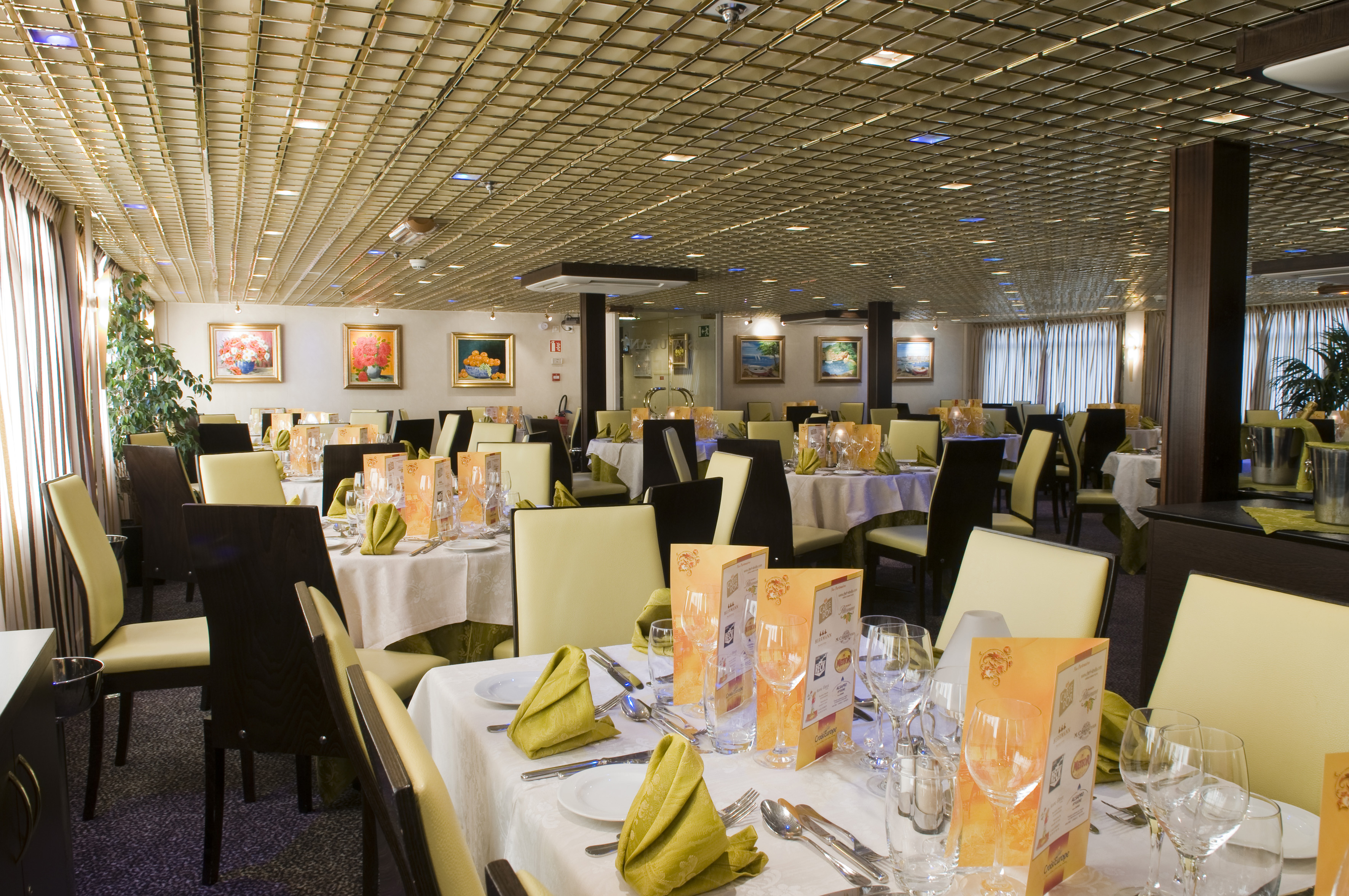 Restauranten er placeret på øverste dæk, hvor alle måltider serveres i løbet af krydstogtet. Der er plads til alle gæster ved borde, der varierer i størrelse, elle med panoramaudsigt. Atmosfæren er afslappet, men elegant.