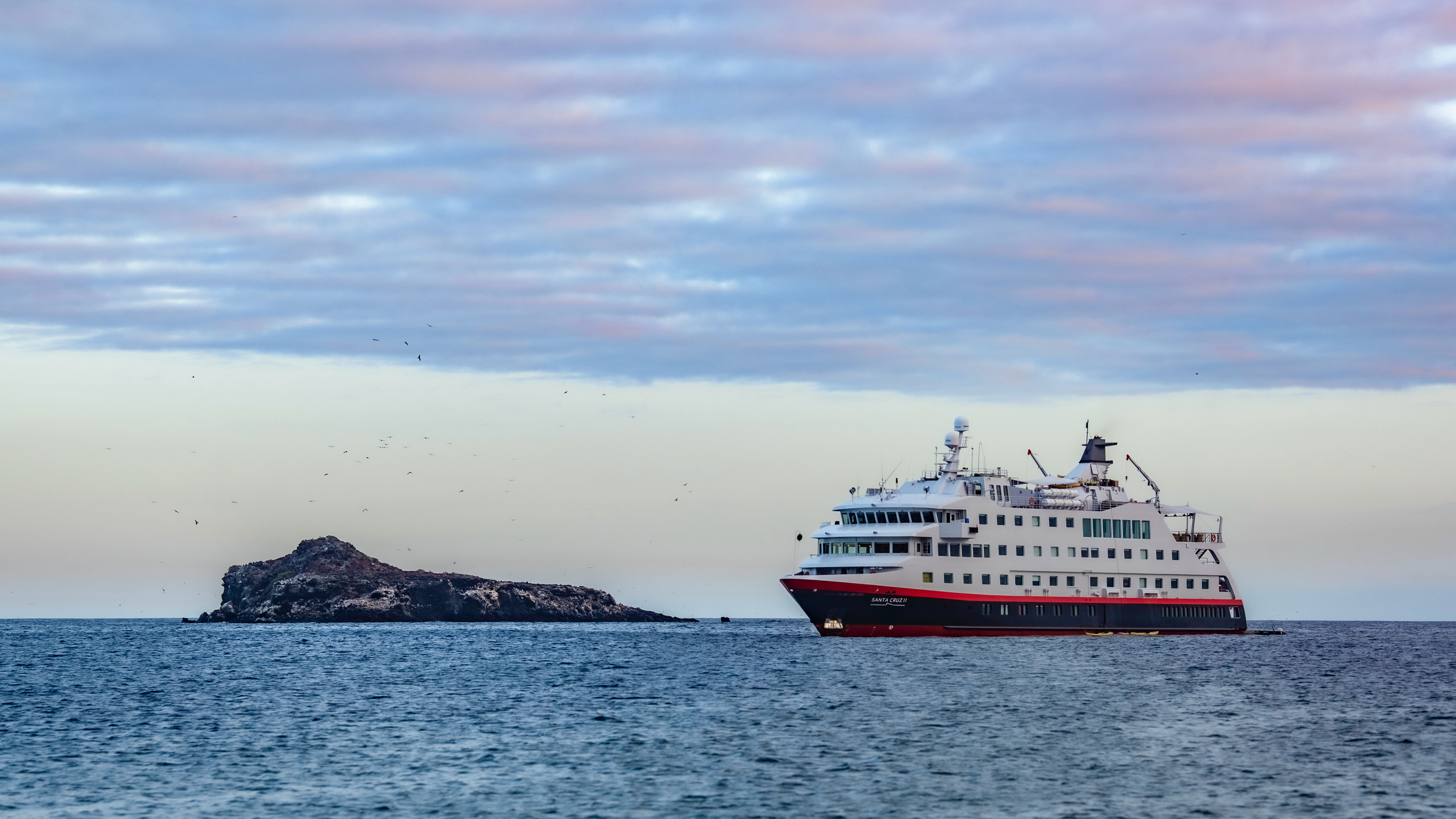 Kom tæt på naturen og dyrelivet med MS Santa Cruz II. Skibet er specialbygget til udforskning, og med kun 50 kahytter og suiter tilbyder skibet en intim og behagelig måde at udforske Galápagos på.