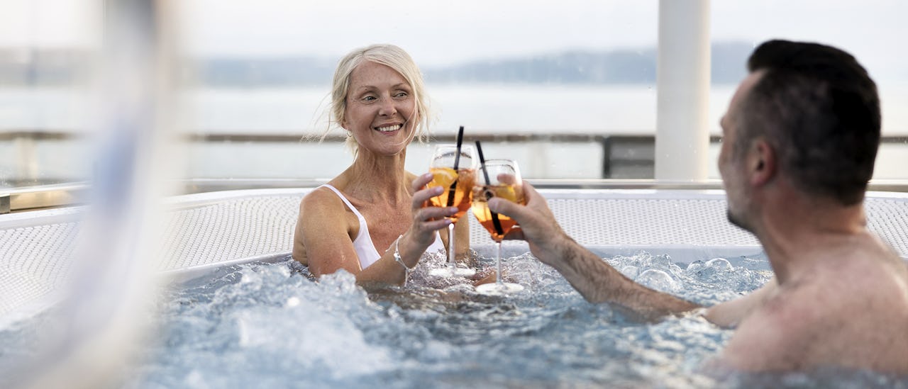 Enjoy the powerful jets of hot water in the jacuzzi on the quarterdeck while looking out over the mountains and fjords. There is also a sauna in the cloakroom area attached to the jacuzzis on Deck 8.