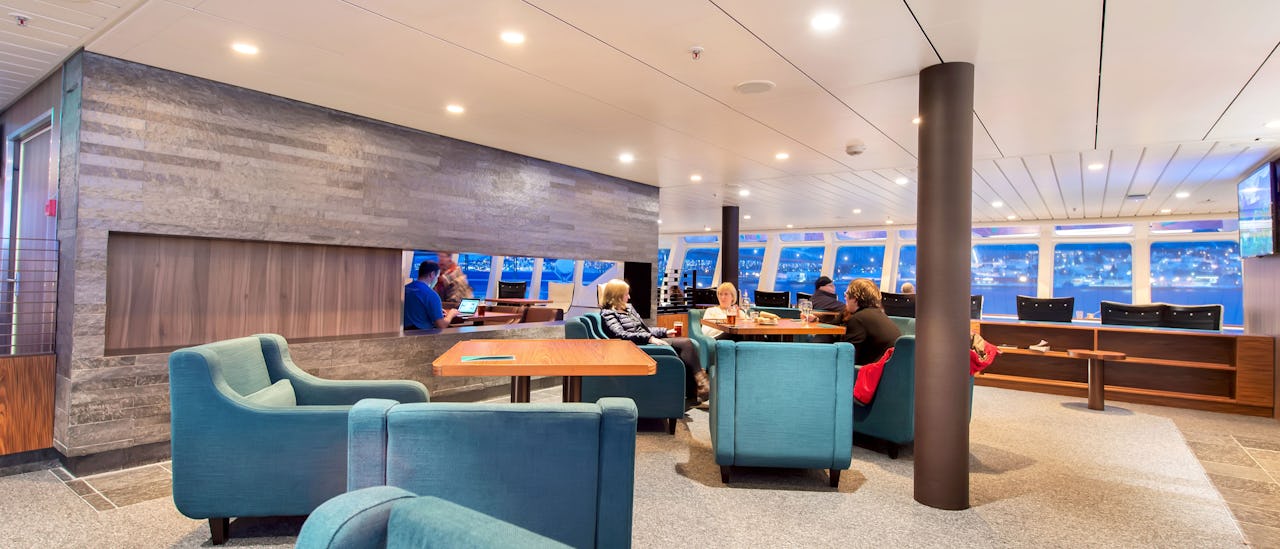 Besøg MS Kong Haralds bar i forenden og nyd en traditionel drink.
