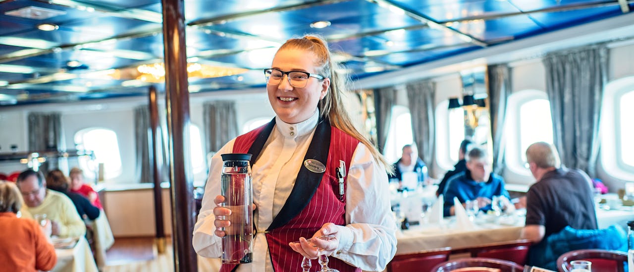 Oplev Norges spektakulære kystlandskab med skibet, der er opkaldt efter Hurtigrutens allerførste skib. MS Vesterålen er et af Hurtigrutens mindre skibe, der byder på en herlig, intim atmosfære.