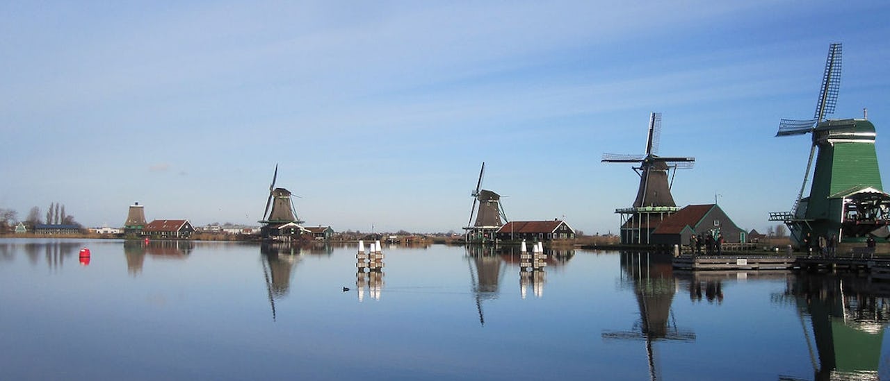 Vi kører ud i de hollandske landskaber og passerer nogle af de store tulipanmarker, et imponerende syn under blomstringen, når de farverige marker står i fuldt flor. Vi besøger det berømte frilandsmuseum Zaanse Schans nær Zaandam. Foruden træsko og tulipaner er vindmøller nok det, Holland er mest berømt for, og her på frilandsmuseet har vi mulighed for at se nogle fine eksemplarer.