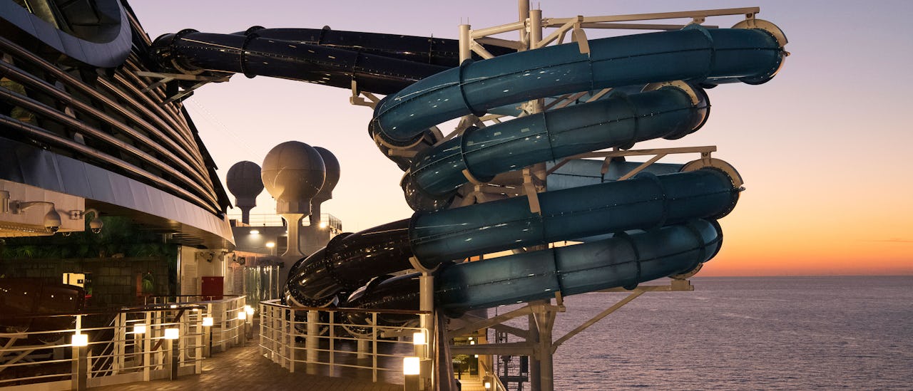 Ombord er der et uendeligt antal aktiviteter – blandt andet den nye forbedrede 5D-biograf, en Rafting-simulator og en virtuel racerbane, hvor man konkurrerer mod hinanden. Du kan også tage panoramaliften op til vandlandet med fem vandrutsjebaner.