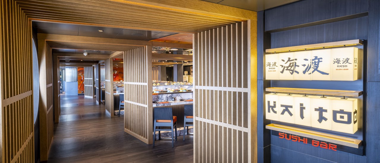Vælg mellem 11 forskellige spisesteder. Fire er inkluderet i krydstogtsbilleten og fem er specialrestauranter (mod ekstra betaling).