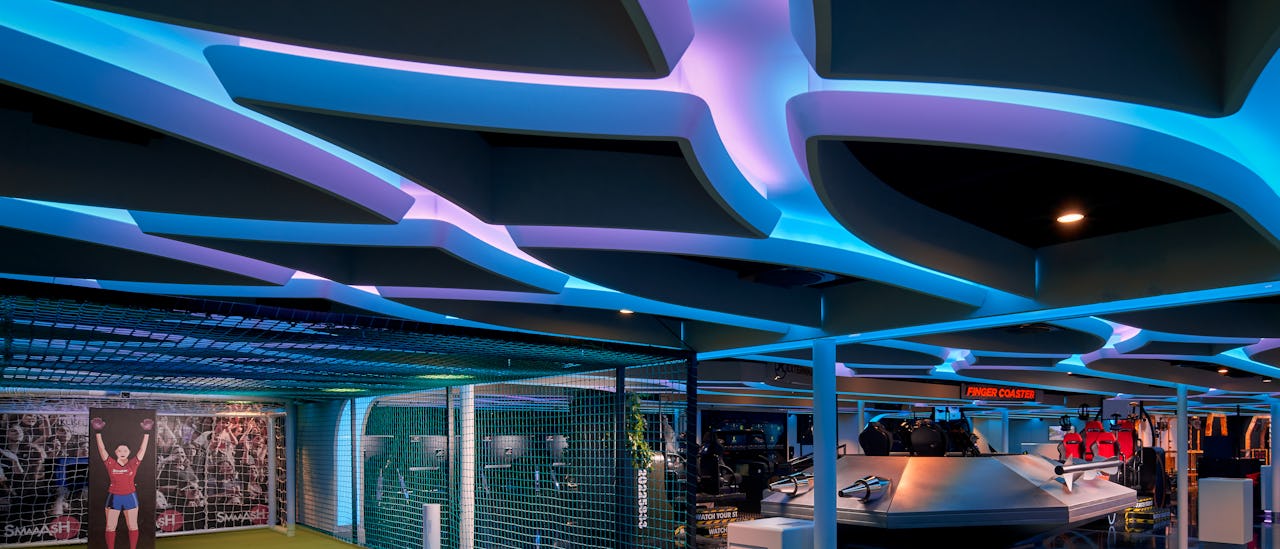 Højst oppe finder du det afslappende pooldæk, flere fantastiske vandrutsjebaner og et sportsdæk med blandt andet en adrenalinfremkaldende gokartbane.