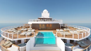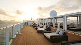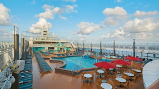 Højst oppe finder du det afslappende pooldæk, flere fantastiske vandrutsjebaner og et sportsdæk med blandt andet en adrenalinfremkaldende gokartbane.