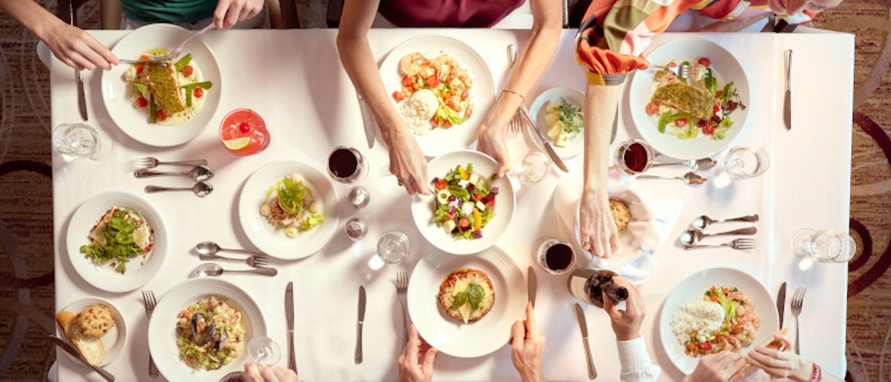 Der findes over 20 måltidsalternativer. Tre á la carte-restauranter, buffetrestaurant, pizzeria og to cafeer indgår i prisen.
